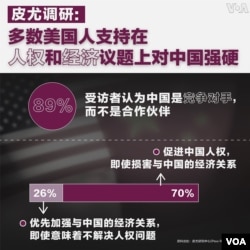 皮尤研究中心资深研究员劳拉·西尔弗博士(Laura Silver)向美国之音表示,对比2018年同类民调,特别值得注意的变化之一是,现在有更多美国人支持遏制中国实力和影响力。